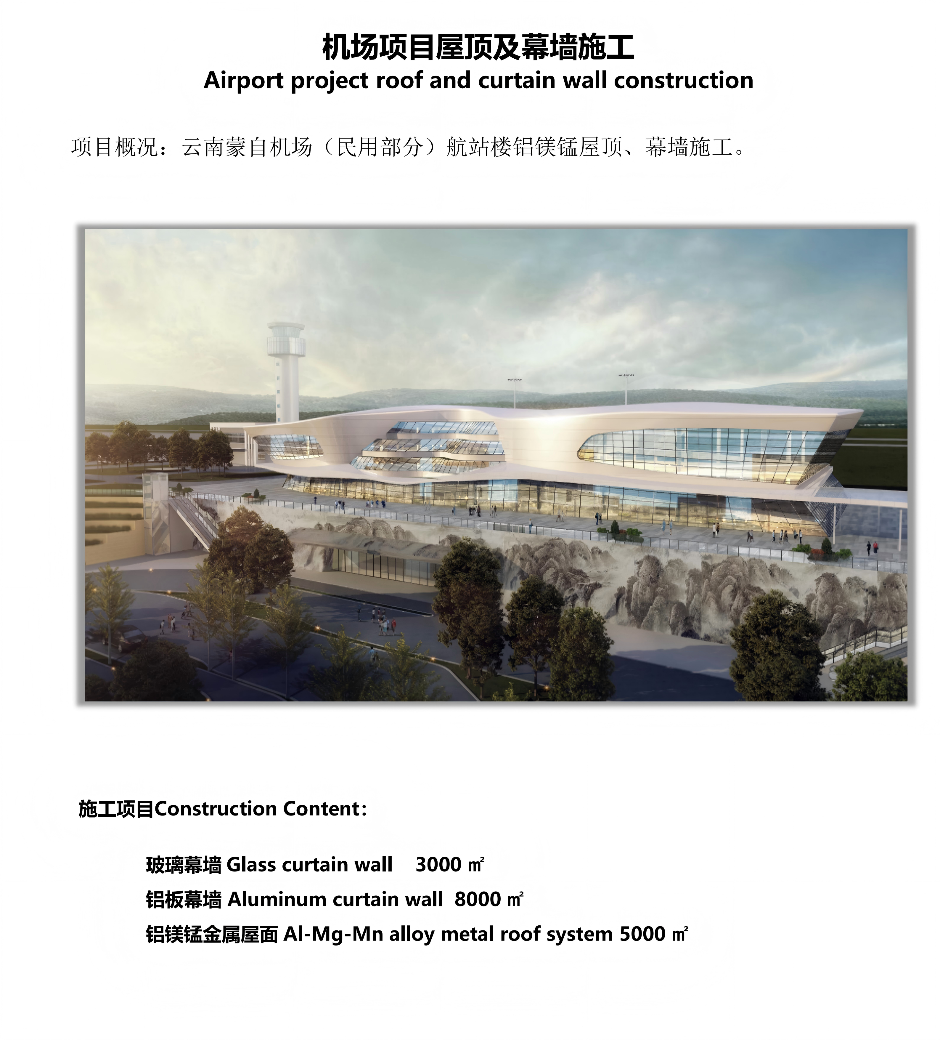 云南蒙自机场(民用部分)航站楼铝镁锰屋顶、幕墙施工